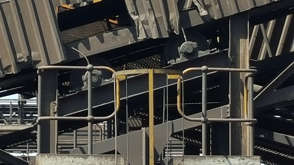 As can be notice in the photo above. Damage to the structure and the available room to replace the bend pulleys. Heavy lifting gear is needed and to do a change out can take up to 8 hrs. By installing a Multiroll pulley, the rollers can be replace without any lifting gear and you can be finished within 30min.